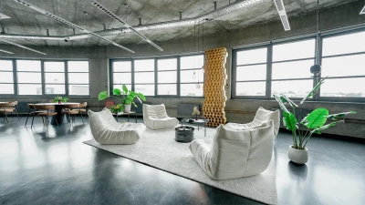 Loft im historischen Industriegebäude mit stylischer Bar und LED-Decke