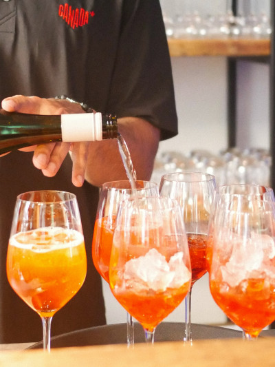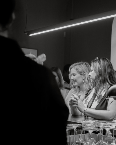 Für diesen Abend wurde unser GOOSE Eventspace sowie die Terrasse vollständig verwandelt. Birkenstämme, wildes Moos, rote Öllampen und Windlichter trafen auf ein Spiel aus dunklem Grün und tiefem Rot, das von der kanadischen Landschaft inspiriert war. Selbst die Fensterflächen wurden neu gestaltet und trugen das Logo von Destination Canada, das sich nahtlos ins Gesamtbild einfügte.