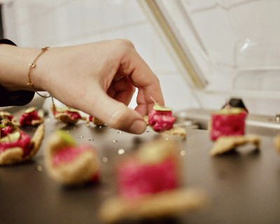Bei den Speisen haben wir uns ganz von der kanadischen Natur inspirieren lassen sowohl in der Auswahl der Zutaten als auch im Anrichten. Elch, Bison, Hummer, Preiselbeeren und Ahornsirup wurden auf beleuchtetem Holz serviert, begleitet von Trockeneisnebel, wildem Moos und aromatischen Kräutern. Das Ergebnis: ein visuelles und geschmackliches Erlebnis, das die Gäste begeisterte.