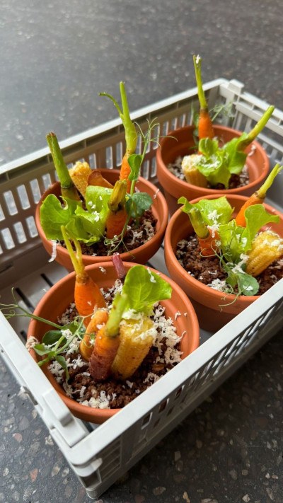 DAIKIN steht für nachhaltige und energieeffiziente Lösungen - und genau diese Werte sollten sich auch im Catering widerspiegeln. Unter dem Motto Urban Gardening entwickelten wir ein Cateringkonzept, das auf regionale, saisonale Zutaten von kleinen, lokalen Erzeugern und eine überraschende Präsentation baute. So fügte sich das Catering perfekt in das Standdesign ein und setzte die Markenidentität von DAIKIN kreativ in Szene.
